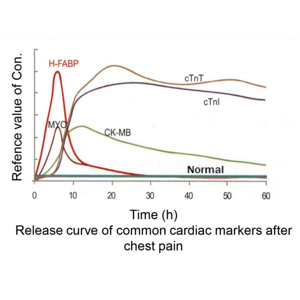 | 2 | Myo | WB/Serum/Plasma | 12min. | 5-400ng/ml | <58ng/ml | acute myocardial infarction (AMI) in early stage. |